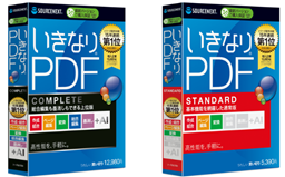 【 パッケージ版、法人ライセンスについて 】 本製品のパッケージ版は、同日より全国の家電量販店で発売いたします。 左:「いきなりPDF COMPLETE」(12,980円・税込) 右:「いきなりPDF STANDARD」(5,390円税込)