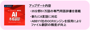 本アップデートにより、AI文字起こしソフト「RecText AI」では、英語の文字起こしができるようになるほか、文字起こしの結果がより自然な文章になります。また、AIオフライン翻訳ソフト「AI本格翻訳」では、医学、電気工学、経済、特許など35分野51万語の専門用語辞書の搭載に加え、新たに6言語で翻訳できるようになりました。