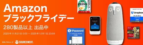 Amazon ブラックフライデー:https://www.amazon.co.jp/blackfriday Amazon内ソースネクスト・ブランドストアページ:https://www.amazon.co.jp/sourcenext |