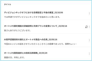 本機能は録音データの内容をAIが自動で解析し、文字起こししたファイルに最適なタイトルを付与するものです。これにより蓄積された会議データの整理・検索が効率化され、必要な情報へのアクセスが容易になります。