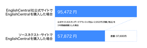 弊社は、「English Central」の公式販売店です。ソースネクスト公式サイトの「3年版」は、3年間利用できて、買い切りで57,872円(税込)とお得な価格で購入いただけます。