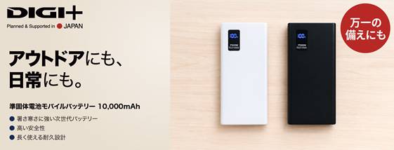 「DIGI+準固体電池モバイルバッテリー(白) DGP-SSMB01-WH」 (4,980円・税込) 「DIGI+準固体電池モバイルバッテリー(黒) DGP-SSMB01-BK」 (4,980円・税込) |
