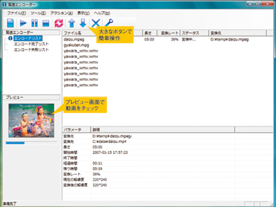 【出力】 MP4(PSP®VideoとiPod Video)、WMV(WindowsMediaVideo)