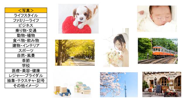 ●写真:ライフスタイル、ファミリーライフ、季節、自然・風景などの15カテゴリ