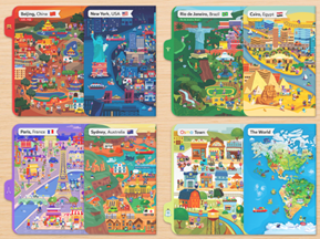 オリジナルのOsmoタウンを含め、全部で8種類の地図が同梱されています。パリのエッフェル塔や、エジプトのピラミッドなど海外の名所や文化に触れるきっかけになります。