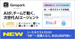 「Genspark Plus(ジェンスパーク プラス) 1年版 オンラインコード版」 40,680円(税込) 「Genspark Plus(ジェンスパーク プラス) 3年版 オンラインコード版」 101,704円(税込) 注:価格は為替レートにより変動するため、参考価格です。最新価格はソースネクスト公式サイトをご参照ください |